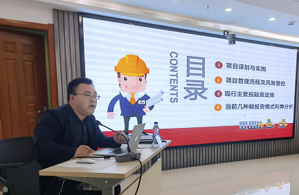 本次培訓(xùn)邀請了正高級工程師徐世平授課。徐世平老師根據(jù)公司的實際情況,結(jié)合集團公司發(fā)展的現(xiàn)階段特點以及經(jīng)營戰(zhàn)略、項目管理等方面情況制定了系統(tǒng)且專業(yè)的培訓(xùn)內(nèi)容。針對項目謀劃與實施、項目管理流程及風(fēng)險管控、現(xiàn)行主要投融資政策和投融資模式利弊分析等四個方面進行了全面細(xì)致的講解,既有基礎(chǔ)理論,又有典型實例,對于集團公司以及各子公司做好項目管理工作,提高項目管理水平具有很強的針對性和指導(dǎo)性。